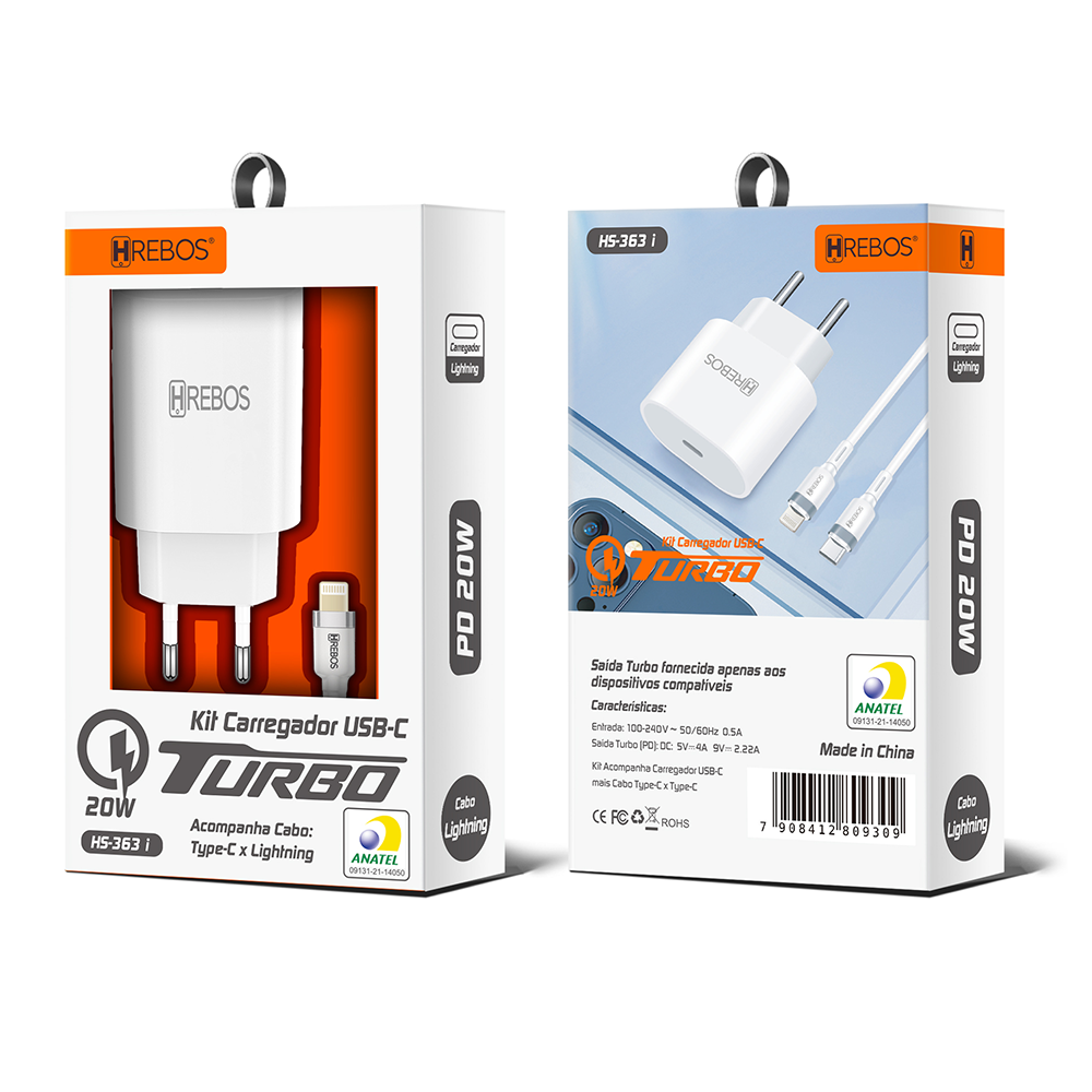 (somente fonte.O cabo é vendido separadamente.) Carregador Power Turbo com 12w de potência, uma entrada USC recarga rápida e eficiente. É ideal para usar em casa, no trabalho ou onde você estiver. Use-o com o iPhone 8 ou posterior para ter 50% de bateria em aproximadamente 30 minutos¹